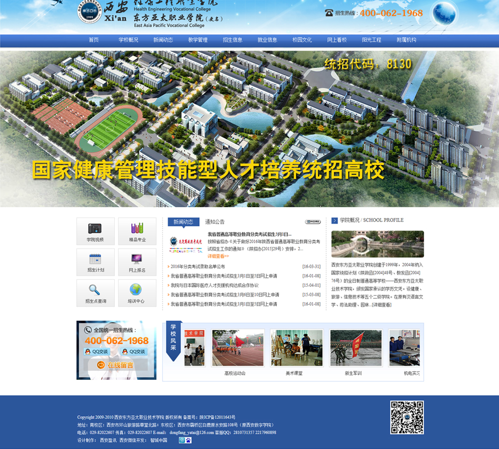 西安东方亚太职业技术学院创建于1999年,是经陕西省人民政府批准,国家教育部备案的全日制高等院校。 学校新校区位于西安市南郊大学城。与西北工业大学、西安建筑科技大学新校区相邻。