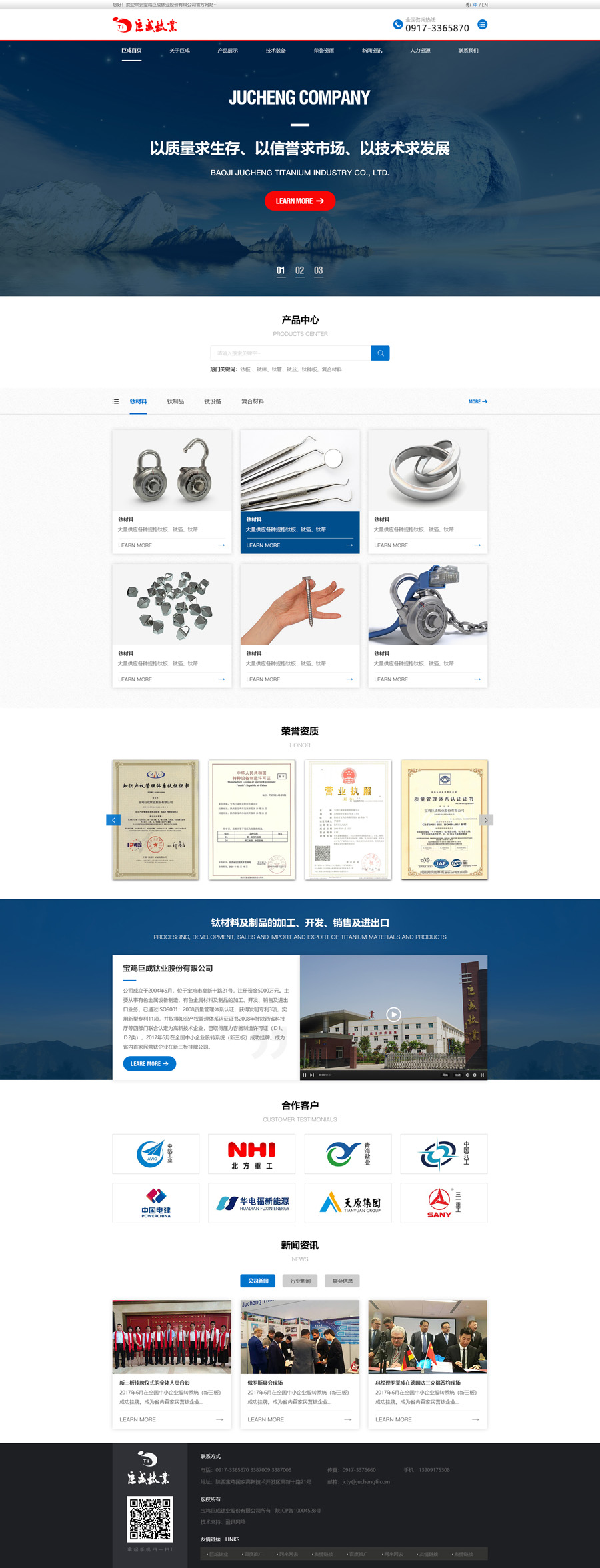 宝鸡巨成钛业股份有限公司成立于2004年5月,位于宝鸡市高新十路21号,注册资金5000万元。主要从事有色金属设备制造,有色金属材料及制品的加工、开发、销售及进出口业务。已通过ISO9001:2008质量管理体系认证,获得发明专利3项,实用新型专利11项,并取得知识产权管理体系认证证书(编号:18118IP1122R0M),2008年被陕西省科技厅等四部门联合认定为高新技术企业,已取得压力容器制造许可证(D1、D2类),2017年6月在全国中小企业股转系统(新三板)成功挂牌。成为省内首家民营钛企业在新三板挂牌公司。